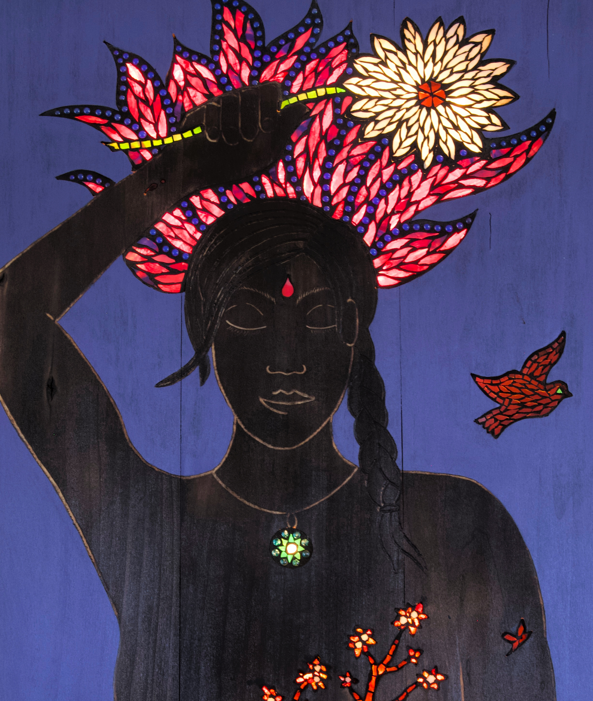 Visit me in Hillsborough, NC at C3 Coworking space upstairs. I spend my days (many nights too!) creating and making whatever art I feel bubbling up from my soul. I start with wood as my canvas and bring it all to life with backlit mosaics. It is from a deep place of inner necessity I am bringing you the Icons of Transformation series, currently in progress.